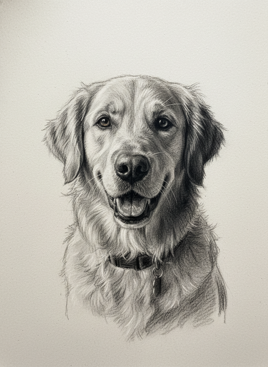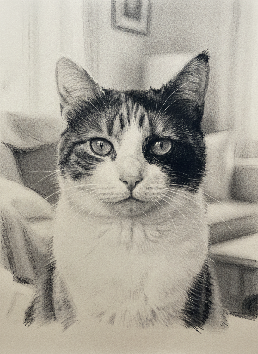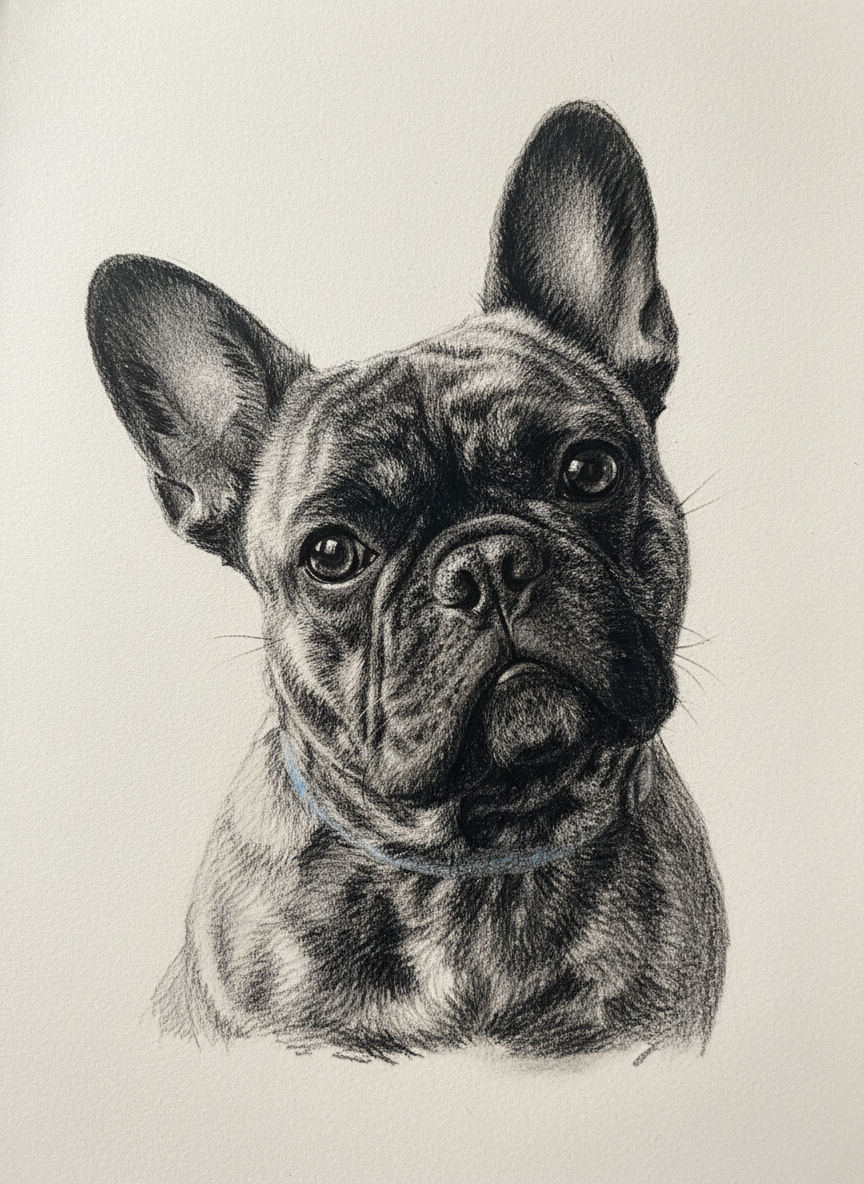 No color. No decoration. Just raw charcoal on heavy paper, smudged and worked until the piece breathes. The most stripped-back style in our catalog — and maybe the most powerful. Every mark matters. Every shadow is a decision. The kind of work that would hang in a gallery with a single spotlight and nothing else on the wall.