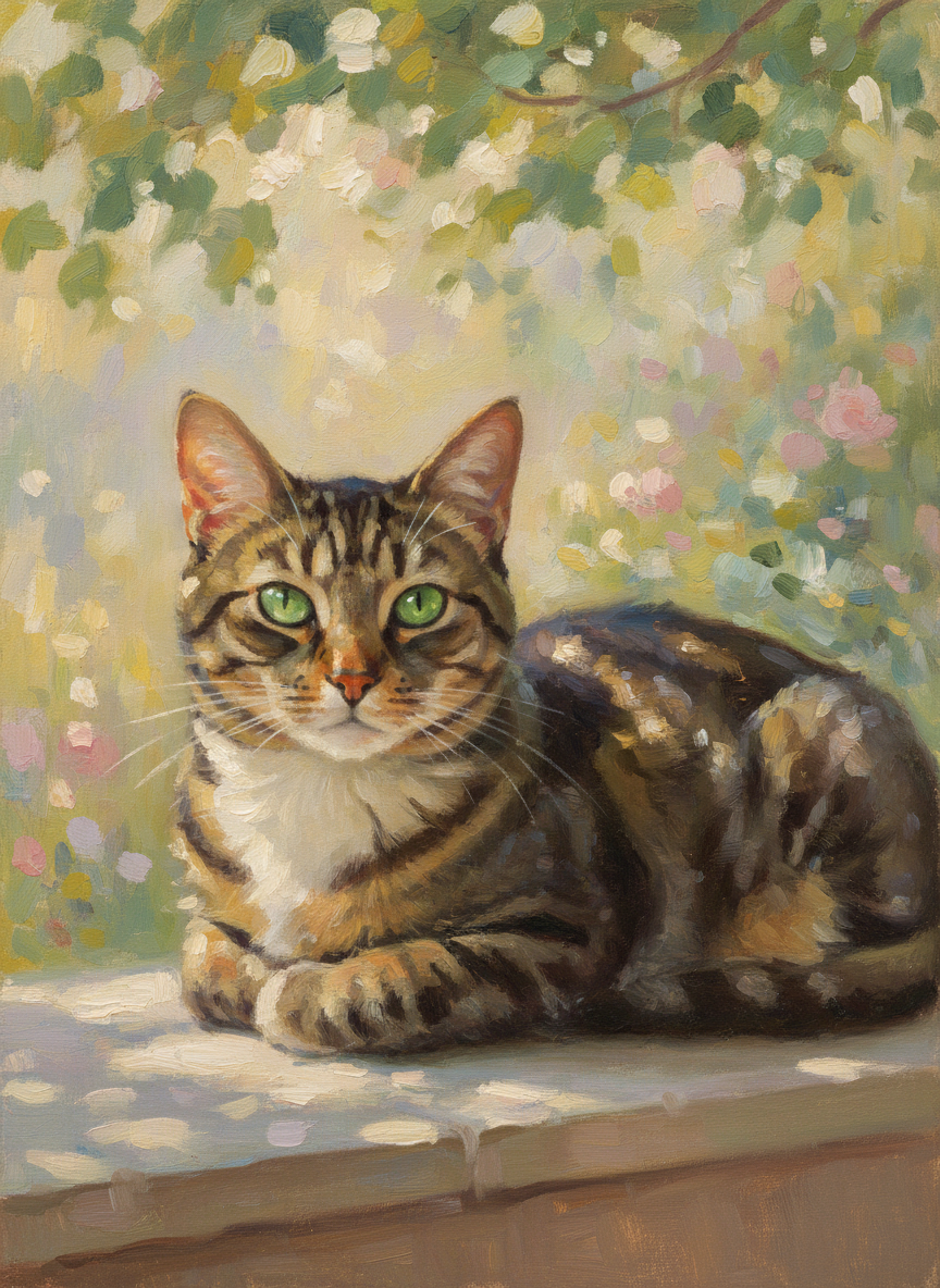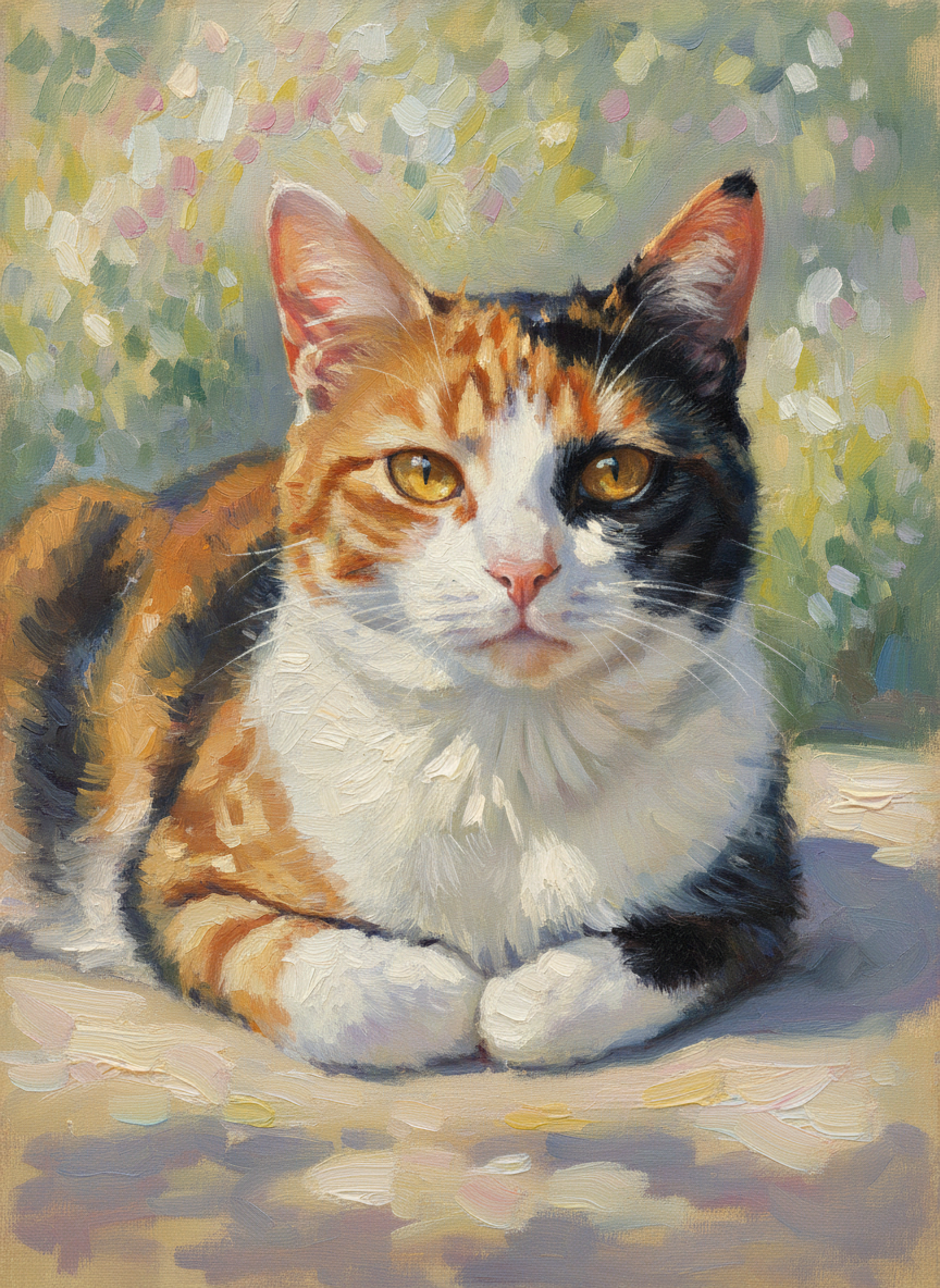 Light dissolving across fur. Color that shimmers rather than shouts. The Monet style is our gentlest impressionist treatment — dreamy, atmospheric, and full of the kind of natural light that made the master famous. Your pet, painted in the golden hour that never ends.