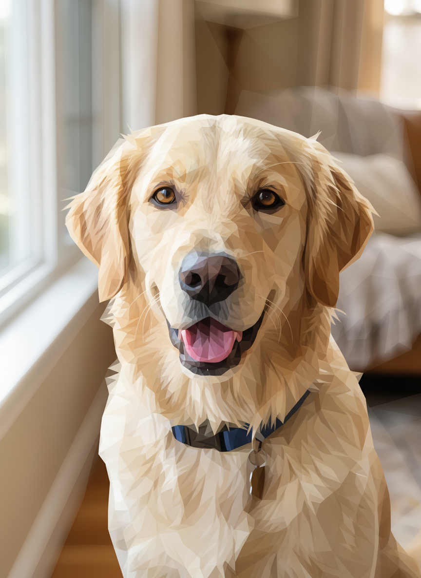 Your pet, deconstructed into hundreds of crisp geometric facets — each one a carefully chosen color, all of them adding up to something unmistakably alive. The Low-Poly style turns organic into angular, soft into sharp, and familiar into something you've never seen before. Modern, clean, and surprisingly warm for something made of triangles.