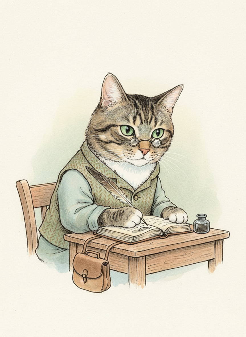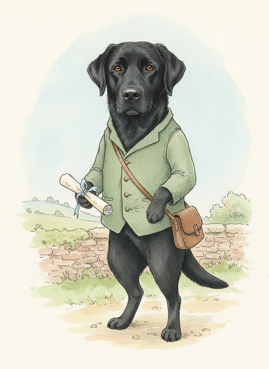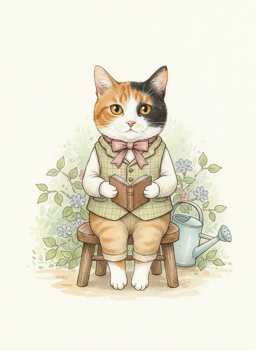 Beatrix Potter understood that the funniest joke is a serious one. She drew rabbits in waistcoats and hedgehogs in aprons and never once winked at the reader — the dignity was the humor. Your pet rendered in that tradition: soft pastel watercolor, gentle detail, and the quiet absurdity of an animal that is clearly used to this kind of thing.