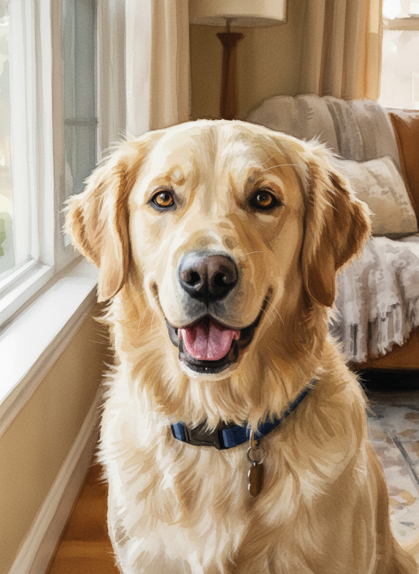 Every print is produced on archival fine-art paper with pigment-based inks rated to last 100+ years. Custom framed with real wood and UV-protective glass. This isn't merch. It's art that happens to be your pet.