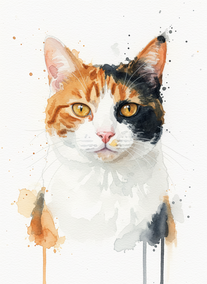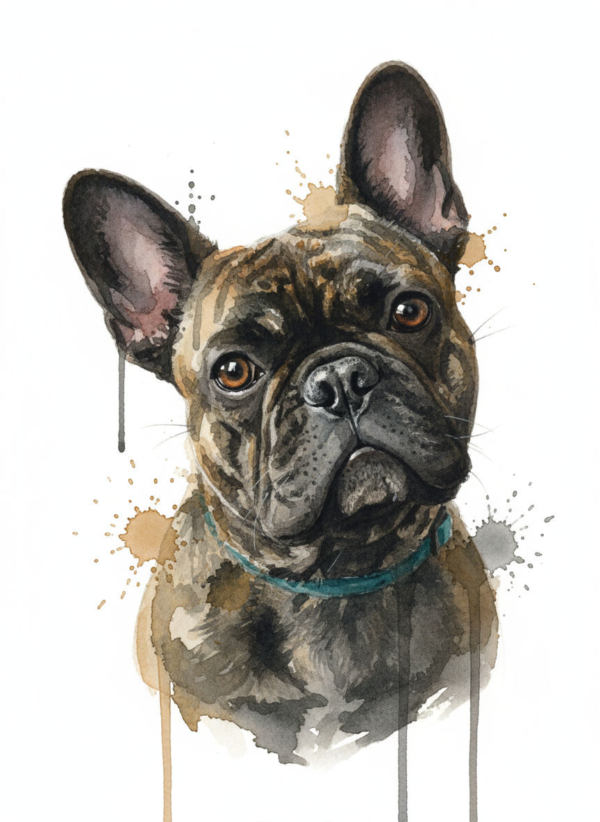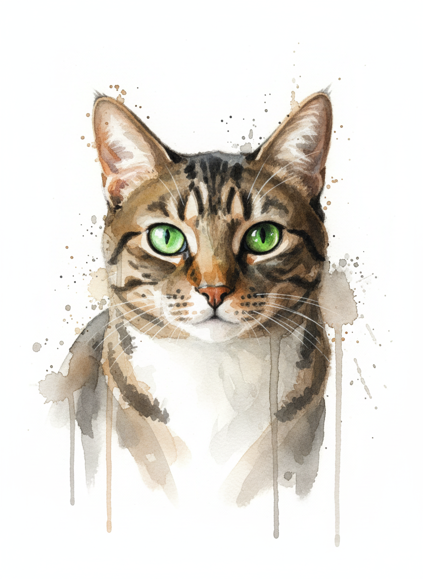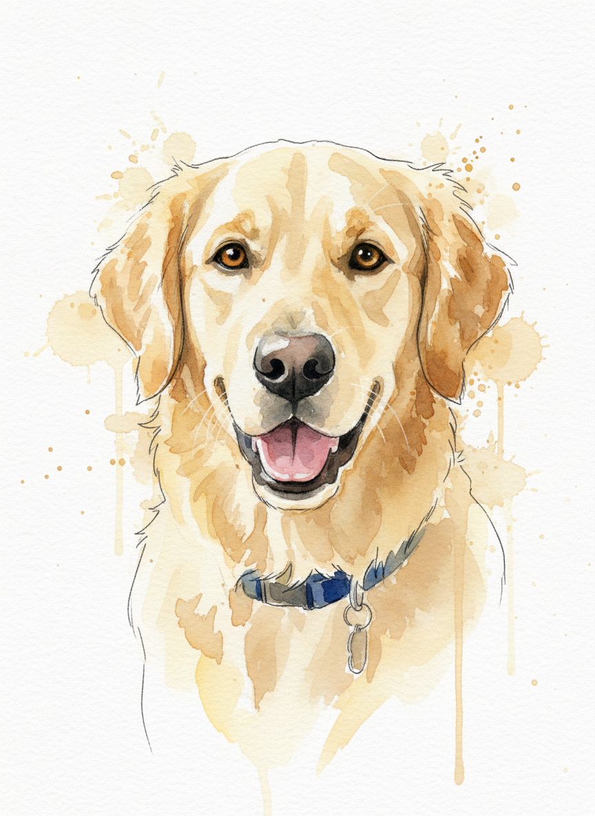 Selective precision meets expressive washes — the signature of editorial illustration at its best. The face gets everything: detail, expression, personality. The rest dissolves into loose, confident washes of color that let the paper breathe. The New Yorker cover starring your pet.